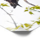 Uma caça se mantém tocada em um galho, olhando para o fotógrafo, em meio às primeiras folhas de primavera.