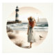 Uma jovem graciosa em um vestido branco fluindo ao longo da costa arenosa, seu chapéu de sol se inclinou contra a brisa enquanto ela olhava em direção a um farol listrado que estava forte contra as ondas. As gramíneas gentis enquadram o primeiro plano enquanto as aves marinhas e um veleiro se movem através do horizonte, acrescentando uma sensação de movimento calmo à paisagem costeira. O estilo de aquarela suave combina romance e serenidade, criando uma cena à beira-mar inspirada no eterno cottagecore que parece nostálgica e sonhadora. A IA gerou trabalho de arte.
