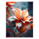 Esta obra cativante de arte digital apresenta uma flor espantosa de dália com pétalas laranja vibrantes e folhas azuis invulgares. A flor se destaca contra um fundo azul calmante, criando um senso de serenidade e mistério. Esta trabalho de arte seria uma adição perfeita a qualquer decoração doméstica, acrescentando um toque de elegância e elegância.