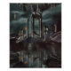 Ancient columns and temple ruins defy gravity in a haunting, impossible world. Massive stone pillars float above a mirror-black obsidian pool, their broken forms reflected perfectly below while inverted cliffs and rock formations hang overhead like a shattered sky. Faint orange embers glow from within cracks, thin light beams pierce the gloom, and a solitary robed figure stands tiny against the overwhelming scale. The scene blends melancholy grandeur, metaphysical mystery, eternal suspension, and quiet awe—perfect for meditation rooms, dark bedrooms, home offices, therapy spaces, gothic-fantasy decor, or as deeply evocative gifts for dreamers, philosophers, fantasy lovers, spiritual seekers, or anyone drawn to surreal symbolism and atmospheric depth.