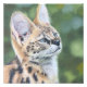 Este rosto adorável pertence a um gatinho serval. Esta design foi desenhada com panos de panela e lápis coloridos.