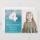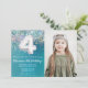 Foto: 4.º Aniversário do Convite Teal e Silver Glitter 4.º convite de festas de aniversário para uma criança de 4 anos com escrevendo de script moderno e balões de folha divertida.