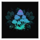 Misteriosos, bioluminescentes, alucinogênicos, ferramentas brilhantes com arbustos de plantas pântanas à noite, fundo escuro e brilhante. Cogumelos brilhantes. Goblincore, Mushroomcore