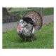 "Tom Turkey, Painterly", por Catherine Sherman. Um peru macho mostra sua dramática plumagem e aparência muito interessante em uma caneta no zoológico infantil. O peru selvagem (Meleagris gallopavo) é endêmico para a América do Norte, mas foi introduzido em todo o mundo e é frequentemente domesticado como aves de capoeira em fazendas. e eles são populares como comidas e para caçar. Os perus machos, também denominados "gombros", são aves grandes, redondas, com músculos poderosos e plumagem colorida. As mulheres são menores e sem muitas das características faciais masculinas. Os machos são mais facilmente reconhecíveis por seus fãs de cauda, "barba" de penas finas no peito e relógios faciais coloridos, incluindo um snood, que é um apêndice longo e liso sobre o bico de um macho. A plumagem de peru selvagem tem vários tons diferentes de cor e iridescência. Embora os perus sejam geralmente vistos como galinhas forrageiras no chão, são bons panfletos e robustos em árvores à noite.