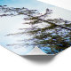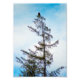 Uma fotografia de uma águia-calva americana tocando uma árvore de pinheiro alto. Um céu azul com nuvens negras está no fundo. Vestígios de luz solar e neve podem ser encontrados na árvore e são galhos. Imagem Copyright 2017 Kimberly J Tilley.