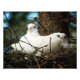 Foto de três pombos brancos do pescoço-redondo descansando com segurança em um ninho de árvore.