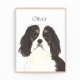 Estou apaixonado por esta ilustração bizarra e detalhada de aquarela de um cavaleiro tricolor preto, vermelho e branco charles spaniel! Personalize essas impressões de arte com seu nome ou monograma para complementar sua decoração e alterar fontes selecionando a opção "editar usando a ferramenta design" na personalização. Compre o resto da minha coleção para os mais doces donos de casa, chás de panela, professores, sogra, marido, namorado, papais noeis secretos ou presentes difíceis de comprar! Para ver mais trabalho e aprender sobre esta artista, visite-a em: www.theprintsprincess.com e www.instagram.com/theprintsprincess