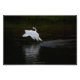 Uma fotografia de um cisne branco esticando suas asas enquanto caminhava em um rio superficial. Imagem Copyright ©2019 Kimberly J Tilley