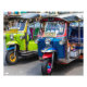 Tuk tuks e seus motoristas esperam negócios fora do mercado de flores, Bangkok, Tailândia