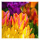 Túlipas Enfeitiçantes 16. Túlipas coloridas em um canteiro de flores. Praticamente todas as cores do arco-íris presentes. Cena floral brilhante e positiva. Fotografia macro.