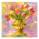 Adicione um toque de elegância e vibração ao seu espaço com este trabalho de arte floral impressionante com tulipas cor-de-rosa num vaso ouro. Contra um fundo sonhador e de cor pastel, este design exude calor e beleza, fazer perfeito para decoração domiciliar, presentes e amantes da natureza. Ideal para arte de parede, capas de telefone e acessórios.