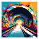 Uma pintura digital vibrante do Túnel Tran i. O túnel está coberto de grafites coloridos. A pintura captura a beleza e a energia do túnel