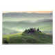 Surise em Val d'Orcia. Uma bela casa de fazenda com árvores ciprestes em um planalto verde, cercada pelas colinas nebulosas da Toscana, Itália. Coloque um pouco de Toscana na sua sala...
