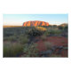 nascer do sol nos marcos uluru e flora desértica contra o céu azul no parque nacional do território norte austrália