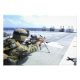 Um fuzileiro americano ajustando sua arma na cabina de pilotagem da USS Harpers Ferry em Marinho.