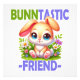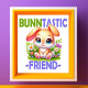 Arma engraçada com um coelho coelho gentil e feliz sorrindo e alegremente sentado cercado por plantas. Design de desenho para t-shirts e outros roupas e mercadorias para bebês, bebês, crianças, raparigas, rapazes, adolescentes e adultos que adoram coelhos coelhos, trocadilhos e beleza.