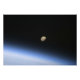 Uma lua gigante visível acima da atmosfera terrestre, com atmosfera.