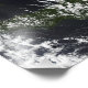 Uma pluma vulcânica da caldeira de Rabaul sopra ao longo da ilha de Nova Irlanda, com massa de terra.