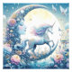 Um belo unicórnio e a lua feitas em cores pastéis.
