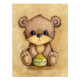 Urso marrom adorável sentado com suas patas em um pote de mel doce amarelo. O trabalho artístico original é de pintura aquosa e lápis coloridos.