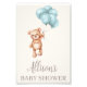 Esta ilustração de aquarela adorável de um ursinho de pelúcia castanho com balões azuis num tema minimalista.
