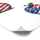 Uma ilustração de uma maçã com o padrão de bandeira dos Estados Unidos em cor de cheio. O lado esquerdo da maçã apresenta estrelas brancas sobre fundo azul, enquanto o lado direito exibe faixas vermelhas e brancas. A maçã propriamente dita deve ter um contorno liso e ousado, sem sombras ou gradientes, e o caule e a folha devem ser um verde natural. As cores devem ser vibrantes e claras, com um design simples e nítido