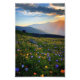 "Traga a beleza da natureza para o seu espaço com este poster do vale da montanha espantoso. Apresentando flores silvestres vibrantes no florescimento de cheios contra um pano de fundo de montanha impressionante, esse trabalho de arte capta a serenidade e o encanto do excelente ao ar livre."