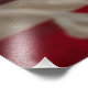 A imagem mostra uma mulher confiante em pé, como Kamala Harris, presidente em frente a uma grande bandeira americana. Ela está vestida com uma bolinhas vermelha impressionante, que adiciona um toque vibrante e na moda à sua aparência. Suas mãos são colocadas em suas quadris, e ela esvoaçou para o lado com uma expressão composta e determinada. A bandeira ao fundo, com suas estrelas e listras, fornece um pano de fundo patriótico, enfatizando temas de orgulho e liderança nacional. A composição geral da imagem transmite força, confiança e um sentido de propósito.
