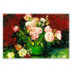 Foto Impressão que apresenta a pintura a óleo de Vincent van Gogh com pedras e Rosas (1886). Lindos peões e rosas cor-de-rosa e brancos sentam-se num vaso verde contra um fundo vermelho. Um presente maravilhoso para fãs do Impressionismo Poste e da arte holandesa.