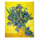 Van Gogh Irises impressão. Pintura a óleo na canvas de 1890. Van Gogh criou múltiplas pinturas da íris ao longo de sua carreira, o Ainda com o Irises apresenta um buquê de irlandeses recentemente cortados num vaso amarelo com fundo amarelo. Os irlandeses estão em cheio florescendo e se inclinam sobre a borda do vaso em direção à mesa. À moda típica de Van Gogh, os irlandeses parecem vibrantes, grossos, pesados e cheios de vida. Um belo presente para fãs de Van Gogh, impressionismo poste, pinturas da íris e arte francesa.