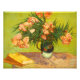 Impressão Van Gogh Oleanders. Pintura a óleo na canvas de 1888. Vincent Van Gogh é um dos pintores de flores do excelente da arte ocidental. O Oleanders é uma das mais belas pinturas florais de Van Gogh, apresentando um buquê de oleanders num pequeno vaso de marinho com alça de bronze. As flores de oleandro são rosas ricas e suas folhas são verdes vibrantes. Ao lado do vaso, há dois livros na mesa, acrescentando uma sensação de homenagem à pintura. Um presente maravilhoso para fãs de Van Gogh, impressionismo poste, oleanders, pinturas de flores famosas e arte francesa.