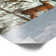 Luz bonita sobre um veado em cima de uma colina de neve.