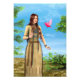 Renderização digital em 3D de uma bela mulher nativa americana com um pássaro rosa numa floresta verde