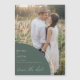 Salve a data dos cartões magnéticos em verde-terra com design de fotos. Perfeito para o casal que mal pode esperar para compartilhar a notícia de seu noivado e a data de seu casamento com a família e amigos. Personalize com sua foto, nomes, data do casamento e local.