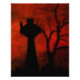 Cruzar numa cruz Celta numa noite vermelha escura. Esta fotografia vertical de um corvo numa cruz em vermelho e preto seria uma adição muito agradável a uma sala ou casa temática gótica.