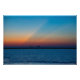 In the distance, a series of dark shapes, including what appears to be several distant ships, are visible against the broken orange horizon. The overall atmosphere exudes a sense of serenity and calmness.