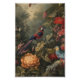 pintura em vintage de uma cena botânica de pássaros e flores no paraíso