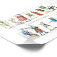 Desenhos de linha antigos que retratam uma variedade de caracteres em vários figurinos e poses.