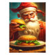 Anúncio ao estilo Vintage com Papai Noel comendo um hambúrguer ou dois cartões de Natal.
