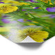Esta impressão mostra um plantio de violas roxas e amarelas.