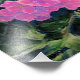 Violeta africana rosa-brilho mostrada contra folhas verdes escuras. Num pote de flor azul. Uma das minhas próprias violetas que amo. Uma pintura acrílica original.