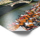 Um barco turístico (bateau-mouche) veleja ao longo do Sena sob um sol brilhante de verão em Paris, França. No fundo à esquerda está a Conciergerie.