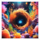 Esta design apresenta uma cena submarina com um vórtice azul girando no centro.