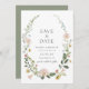 Boho Photo Primavera Whimsical Wildflower Elegant Wedding Salva O Convite Estilo Boêmico Wreath Wildflower Simples Convite com Pastel Elegante Primavera e Flores Selvagens Coloridas e Garrafas Verdes Sage em Aquarela Impressa Mão. Por favor, edite a parte de trás do convite com a sua foto. A cor de fundo Sage Green é linda para casamentos românticos Boho e casamentos Garden. Convites simples e imprimíveis para primavera, verão, outono (outono) e casamentos no inverno.