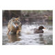 A impressão fotográfica é mostrada com um lobo selvagem perseguindo um pato no Parque Nacional de Yellowstone. Apenas tapete e moldura e você tem arte.