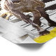 Impressões de fotografia de qualidade profissional. Um cavalo de Cinza Dapple fotografou galopando bem em você numa manhã ensolarada de outono. As maçãs são uma variação de cor mais comumente observada em cavalos de cinza.
