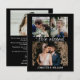 Anuncie seu elogio de casamento aos seus amigos e família por esta carta moderna. O design tem três colagens de fotos na frente com texto branco de caligrafia "nós fugimos" e os nomes das recém-casadas. No verso, você tem uma foto no topo e o parágrafo de texto de detalhes do casamento abaixo. Personalize o cartão com suas fotos, detalhes do casamento, data do casamento e nomes.