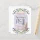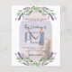 Um fundo branco decorado com flores lavandas, verde de eucalipto e um quadro de arco para sua foto. Personalize e seus nomes e detalhes. Voltar: Adicione a url do site de casamento ao código QR para obter detalhes e/ou RSVP. 1 folha = 1 convite impresso de ponta a ponta.