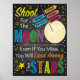 Torna o excelente inspirador e provocador de pensamentos em arte. Um gráfico excelente, colorido e atraente que captará a atenção da criança e a lembrará de alcançar seus objetivos! Cores brilhantes contra um fundo de quadro negro - impressões lindamente! Atire na Lua, mesmo que sinta sua falta de terra entre as estrelas!
