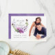 Cartões de agradecimento de casamento com flores de violeta, lavanda e roxo em uma grinalda pintada à mão, projetados para serem personalizados rápida e facilmente de acordo com os detalhes do seu evento.